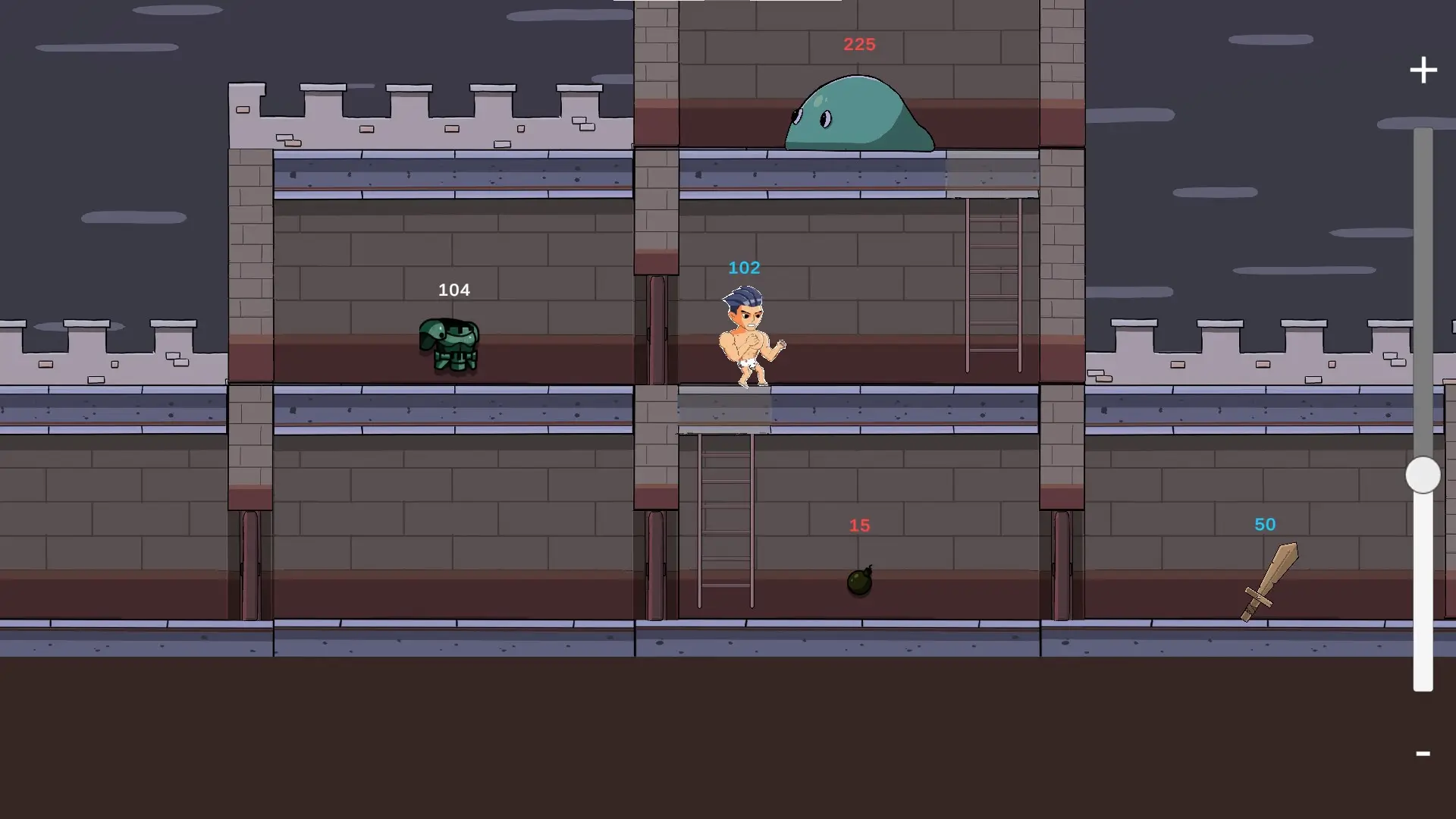 a strategy-action game inspired by popular mobile game ads where players must choose paths with power values greater than their own to survive. Along the way, traps reduce the player’s power, while collectible equipment provides valuable power-ups to help overcome tougher enemies.